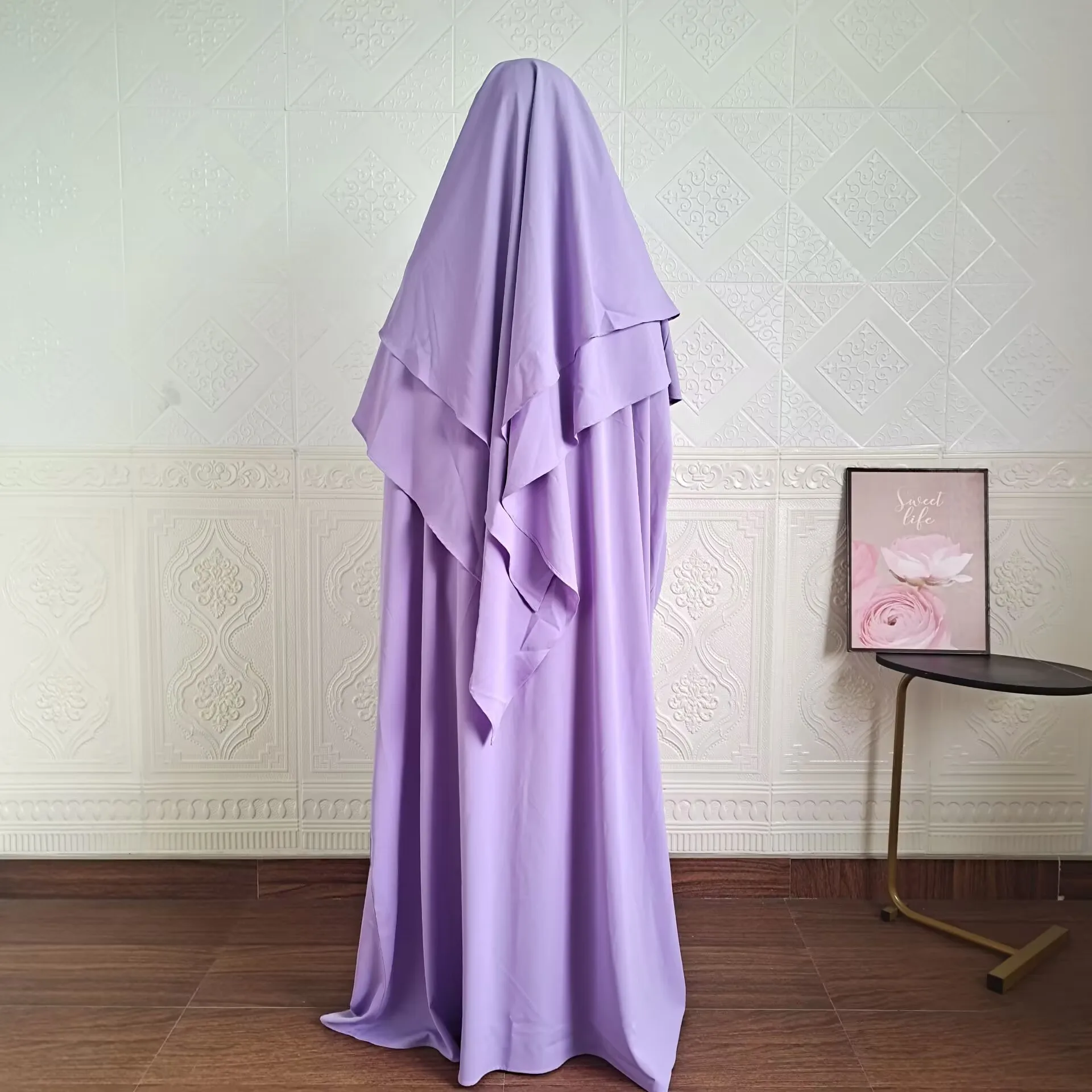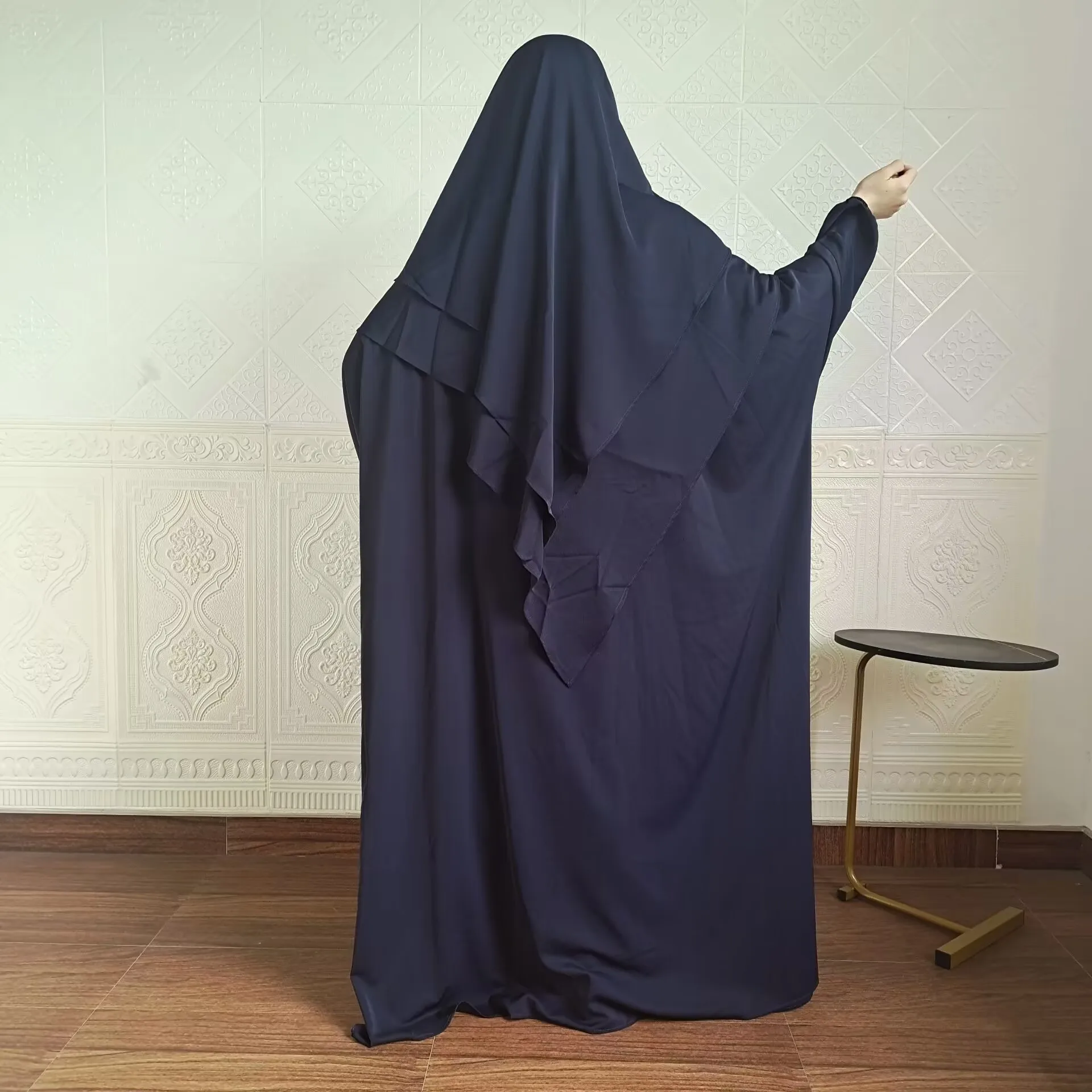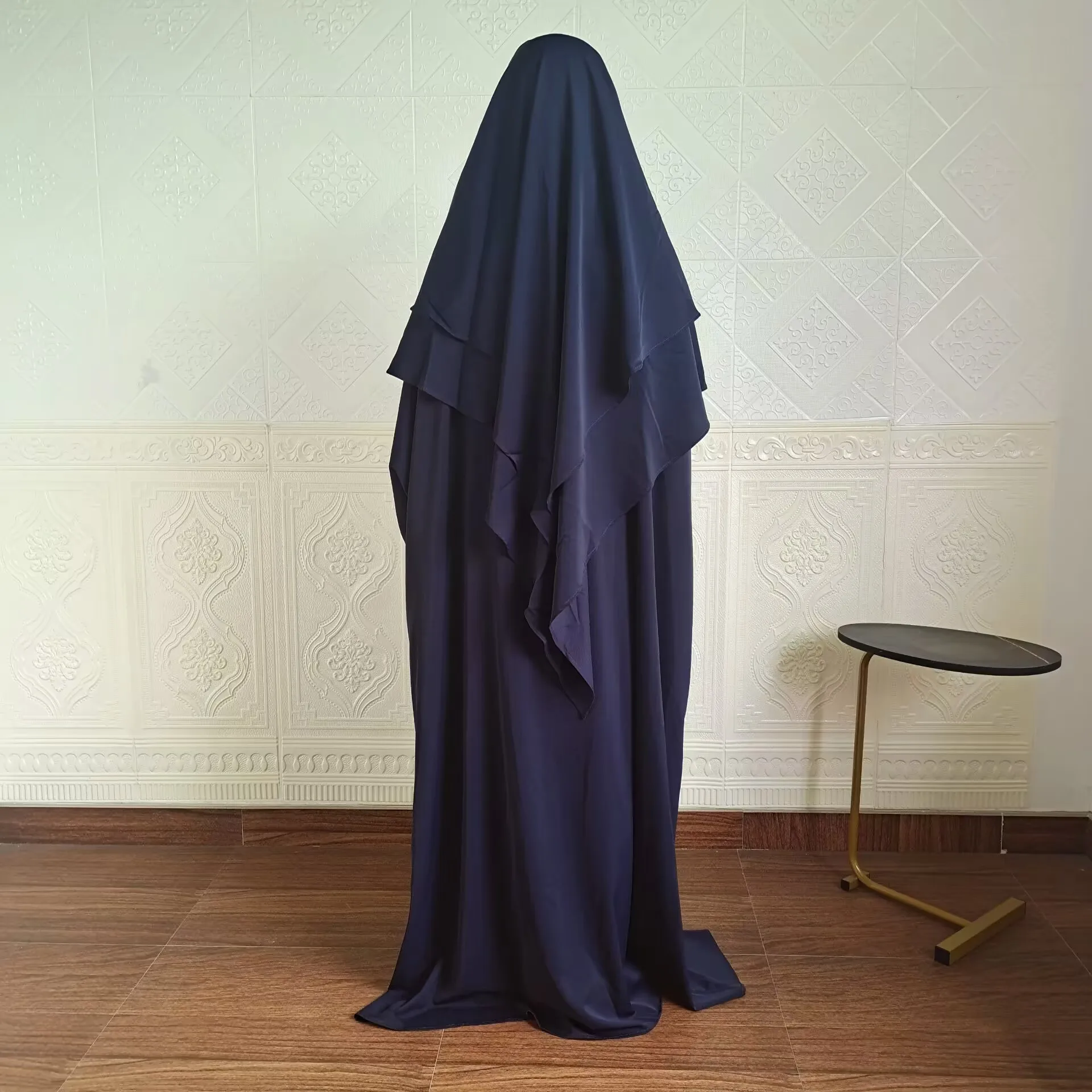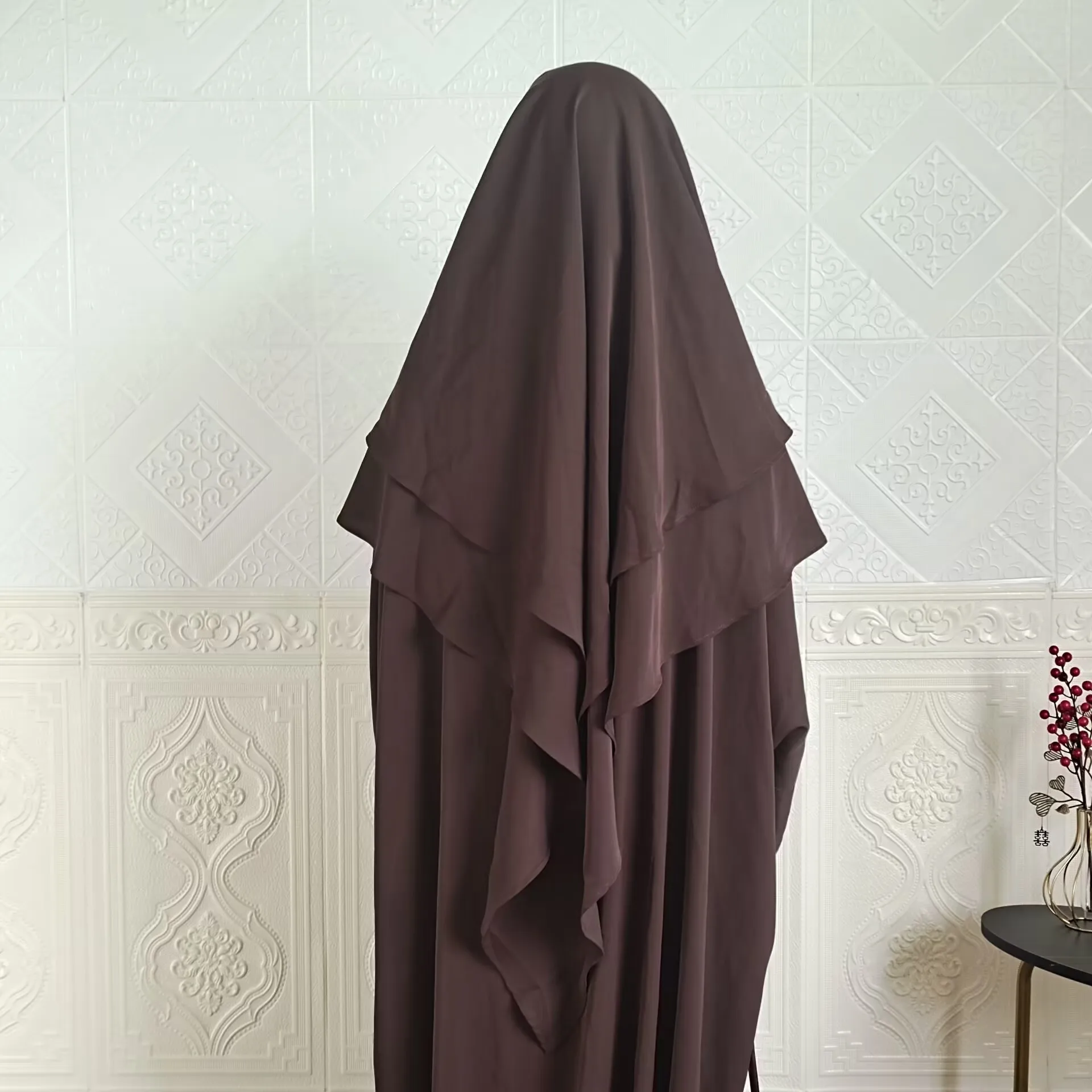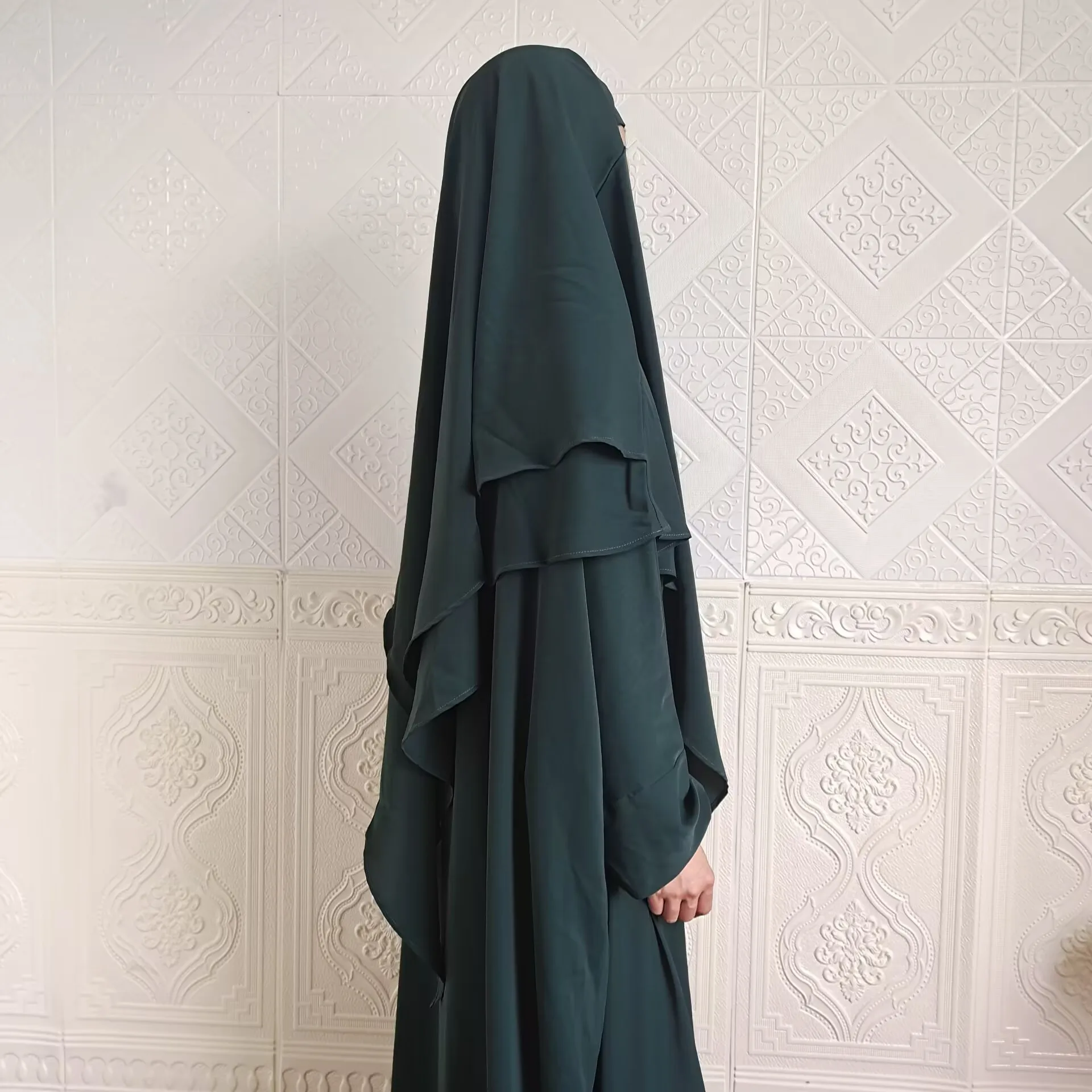 headscarf is 2 layers long khimar. front is 1 layer and back is 2 layers