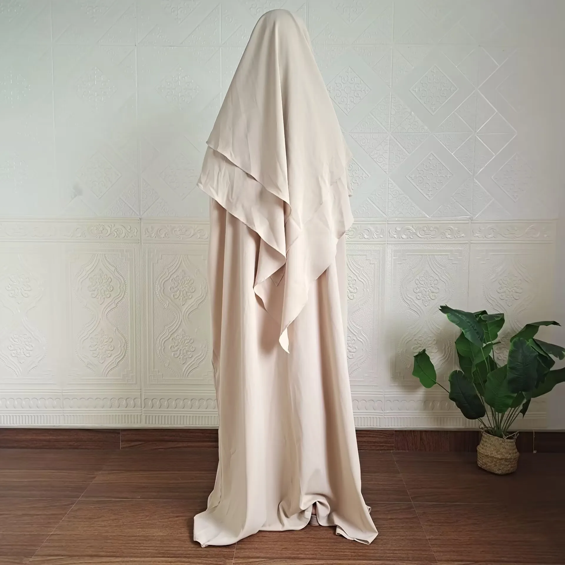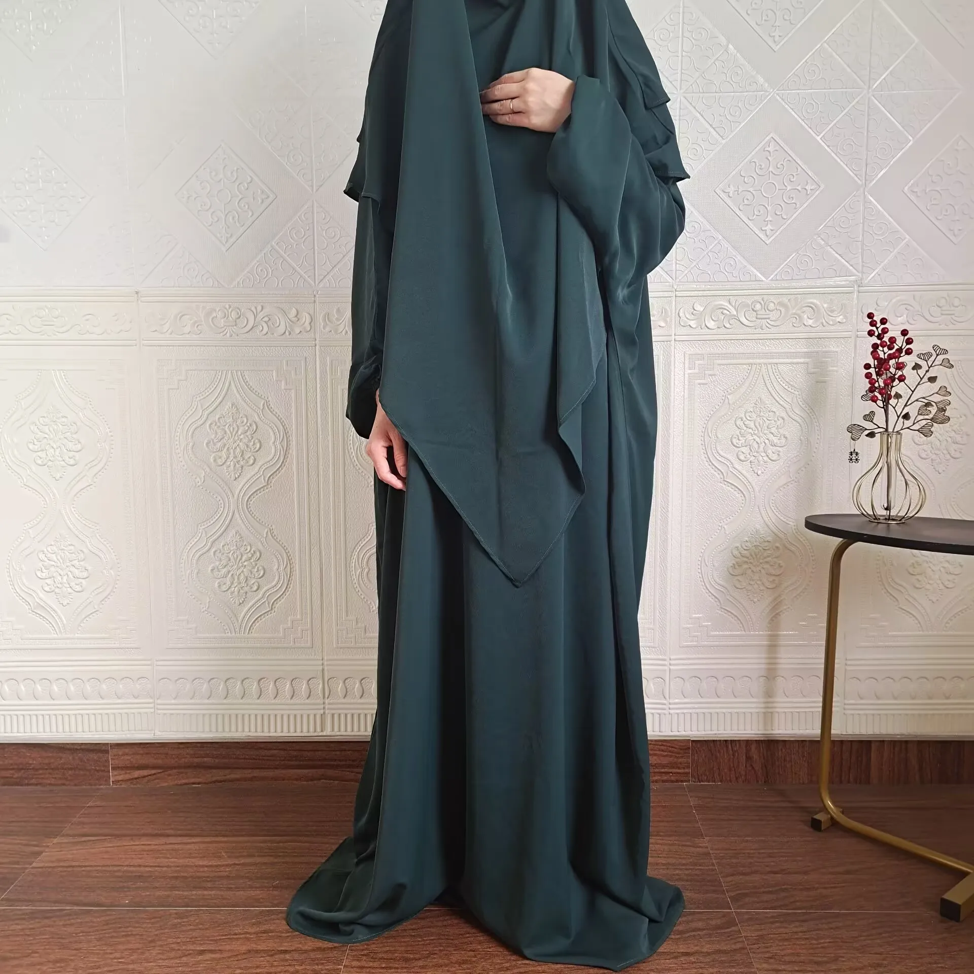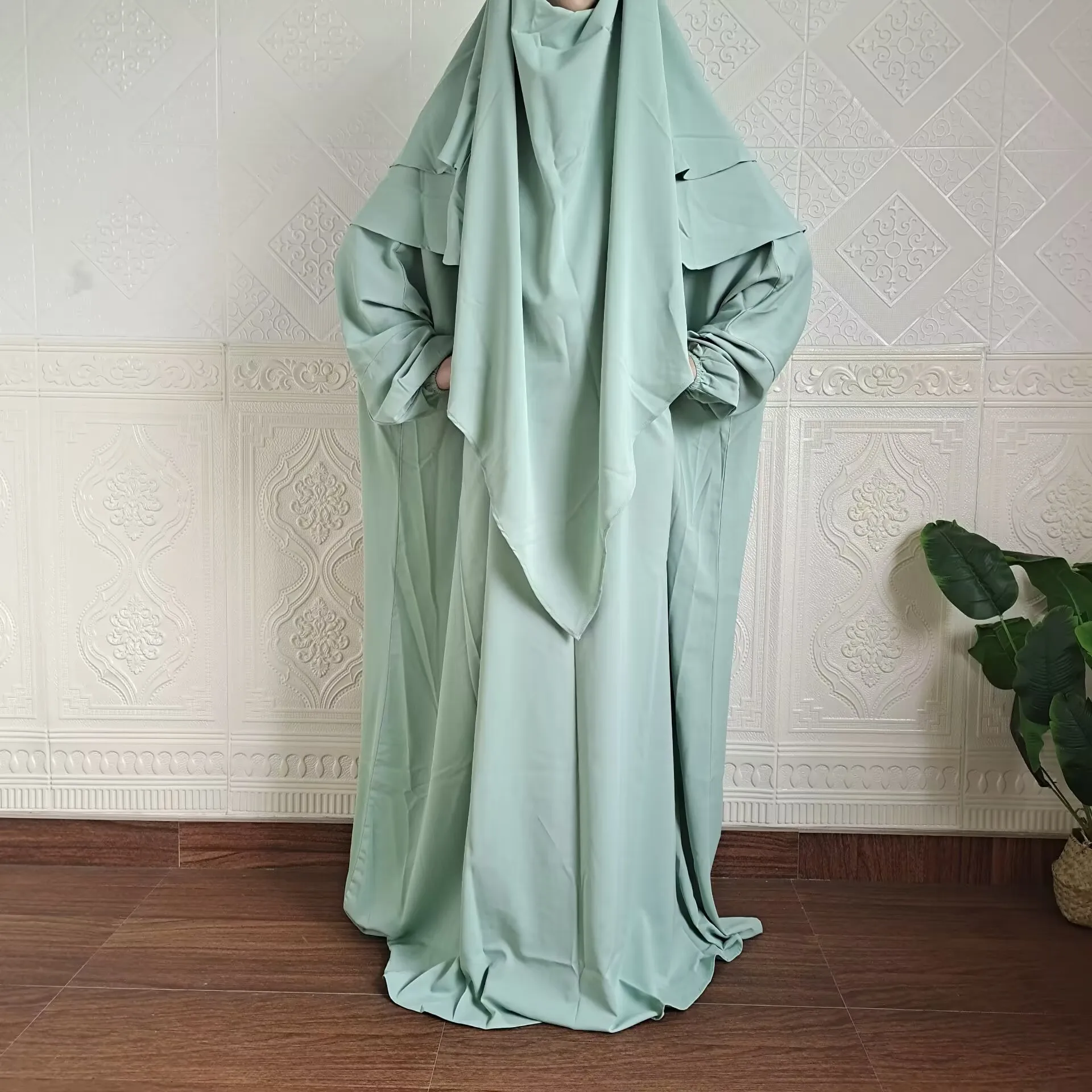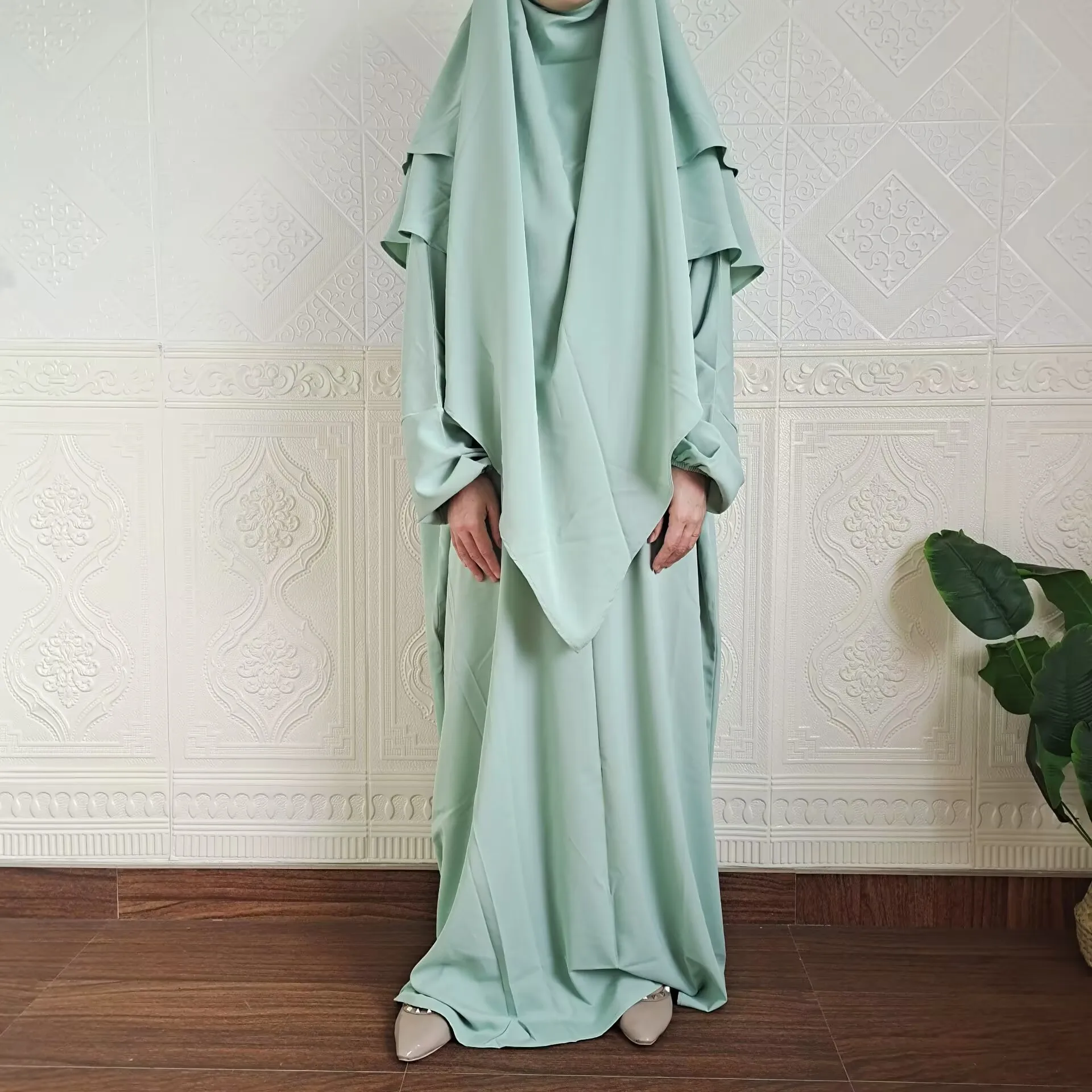 Eid Abaya Dress for Woman 2 Piece Set +Long Khimar Niqab Ramadan Women Prayer Party Arabic Robe Caftan Vestido Kaftan