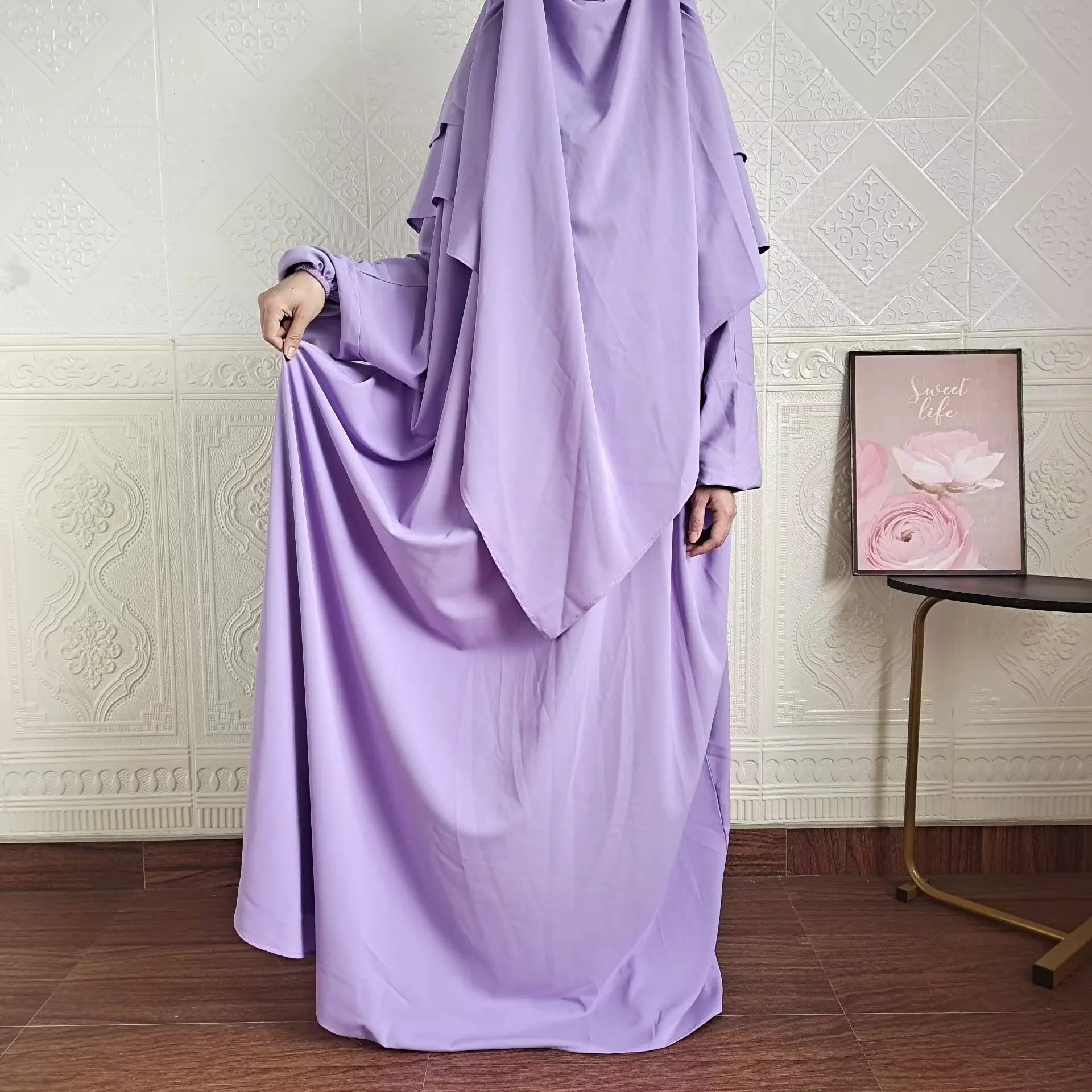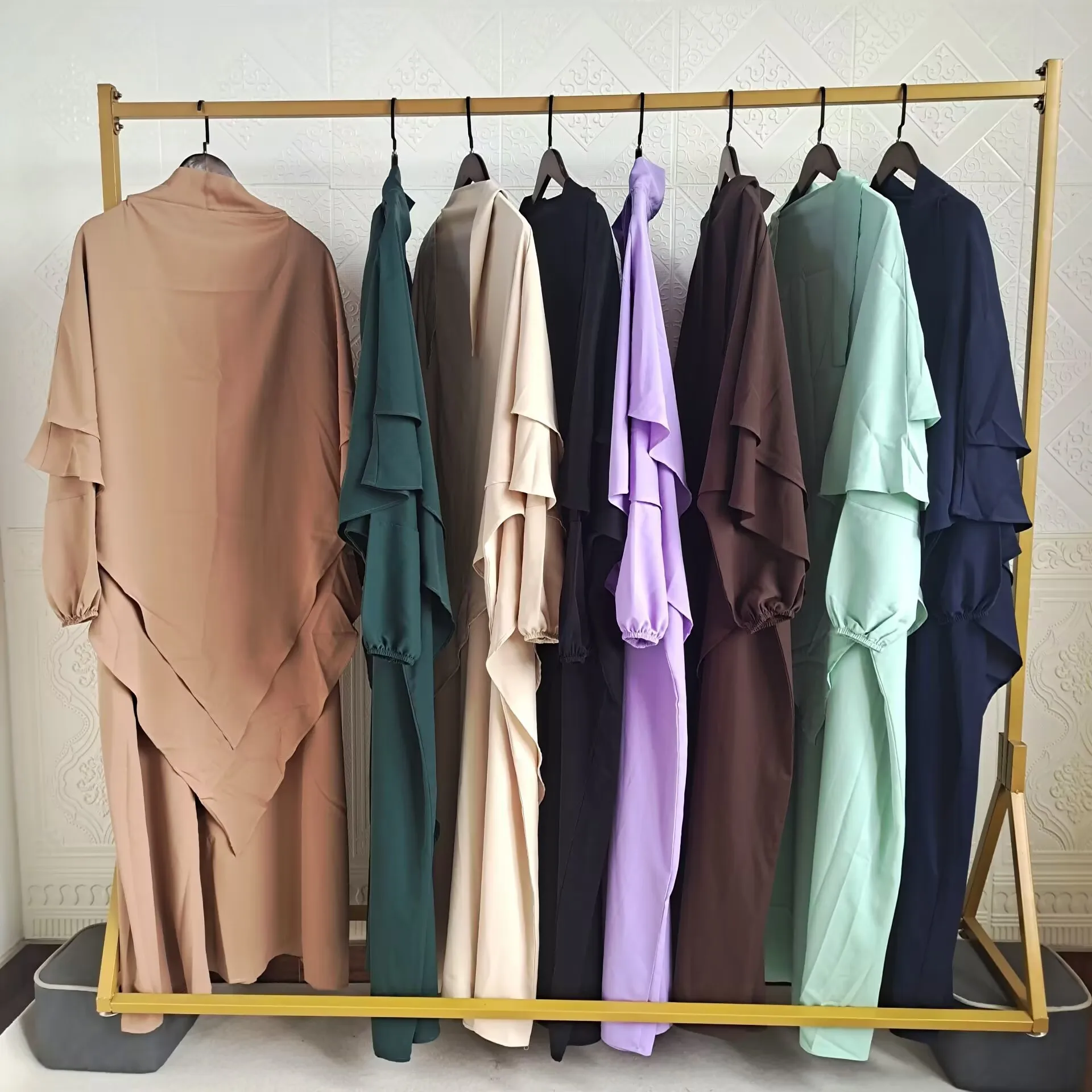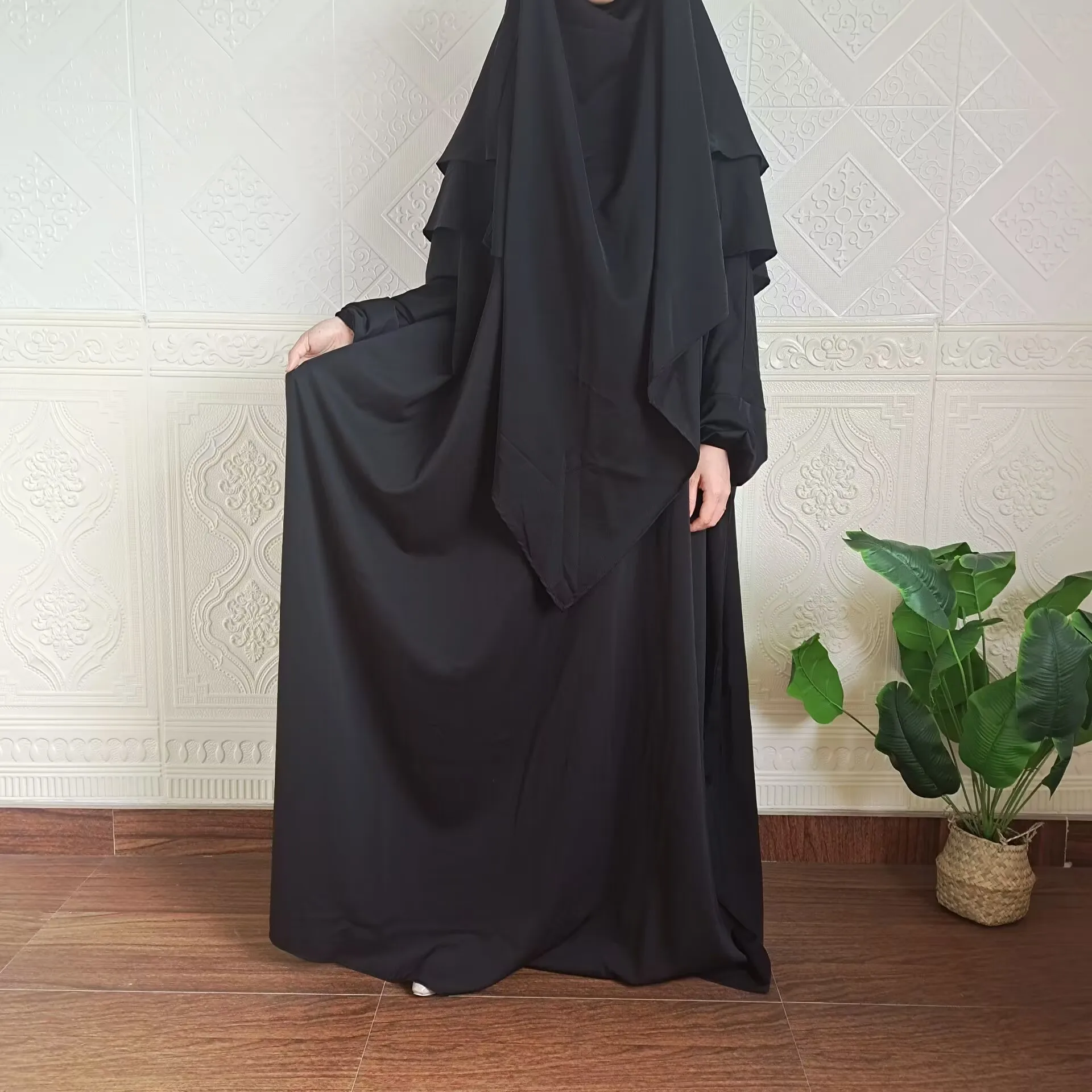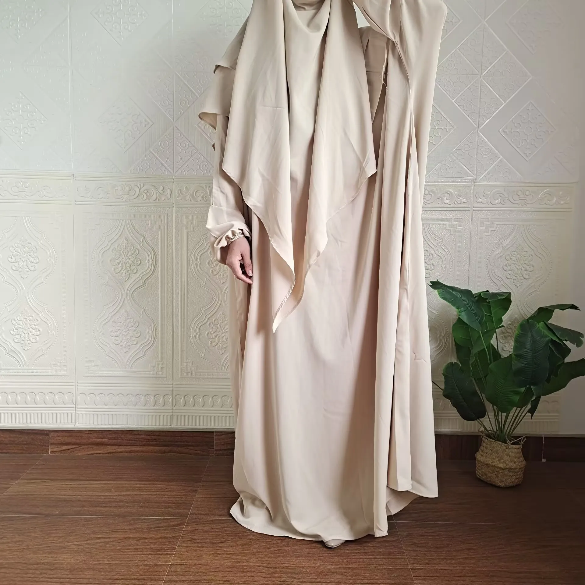 Eid Abaya Dress for Woman 2 Piece Set +Long Khimar Niqab Ramadan Women Prayer Party Arabic Robe Caftan Vestido Kaftan