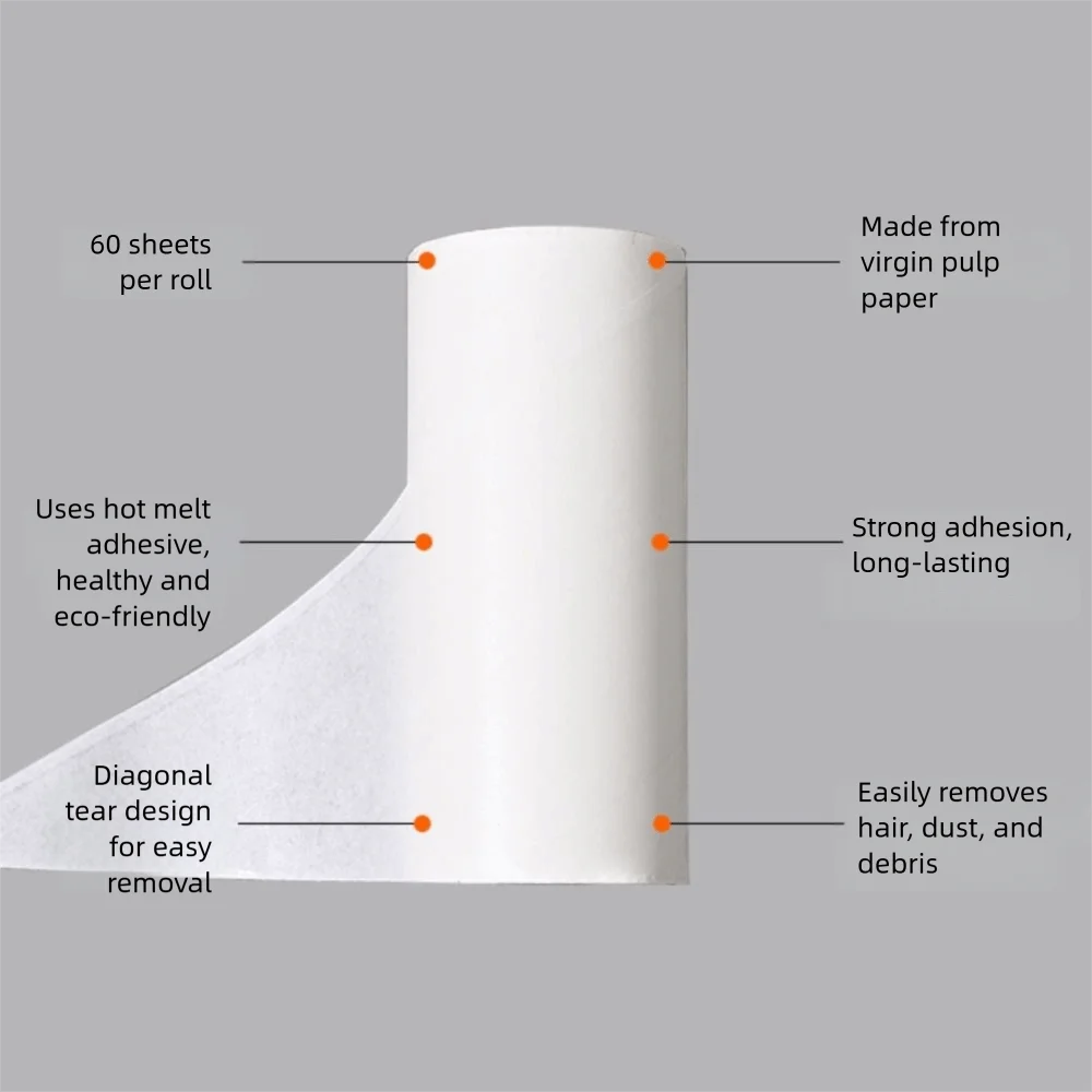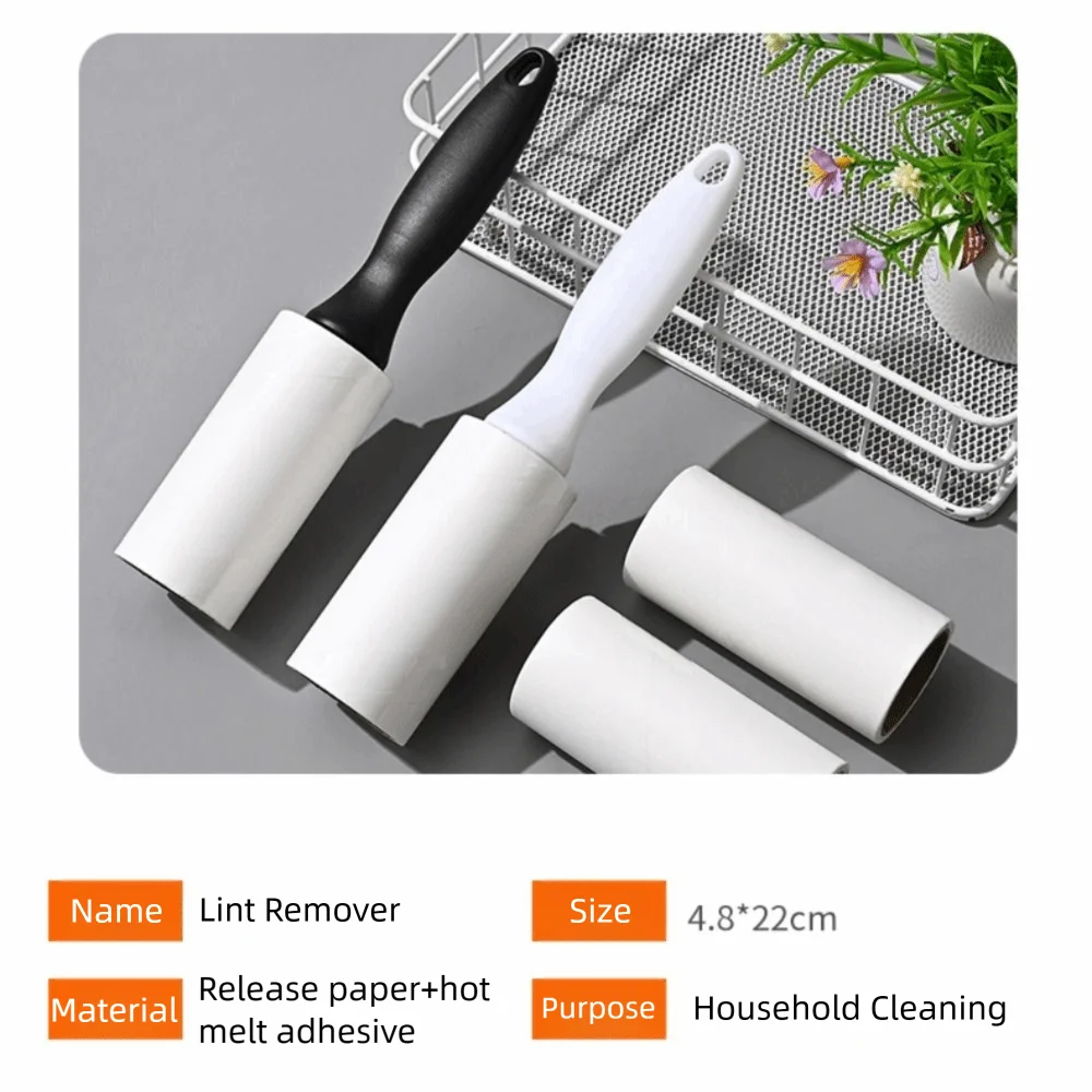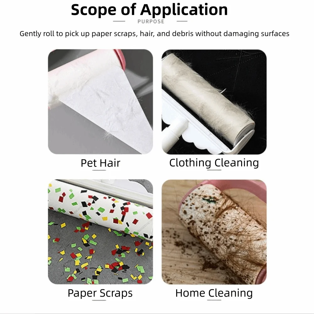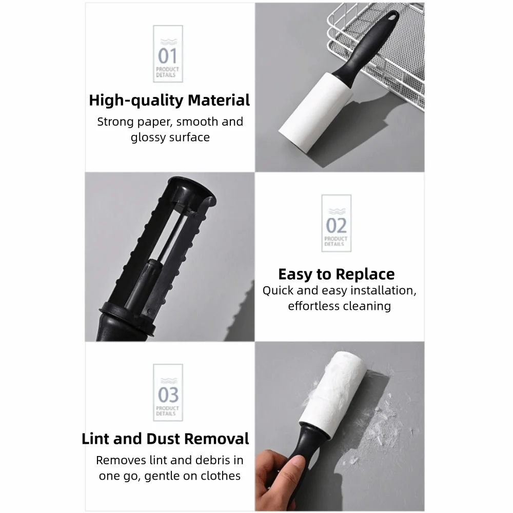 2. Instant Lint & Hair Removal:Self-adhesive roller effortlessly picks up pet hair, lint, and debris from clothes, furniture, and car interiors with a single roll.