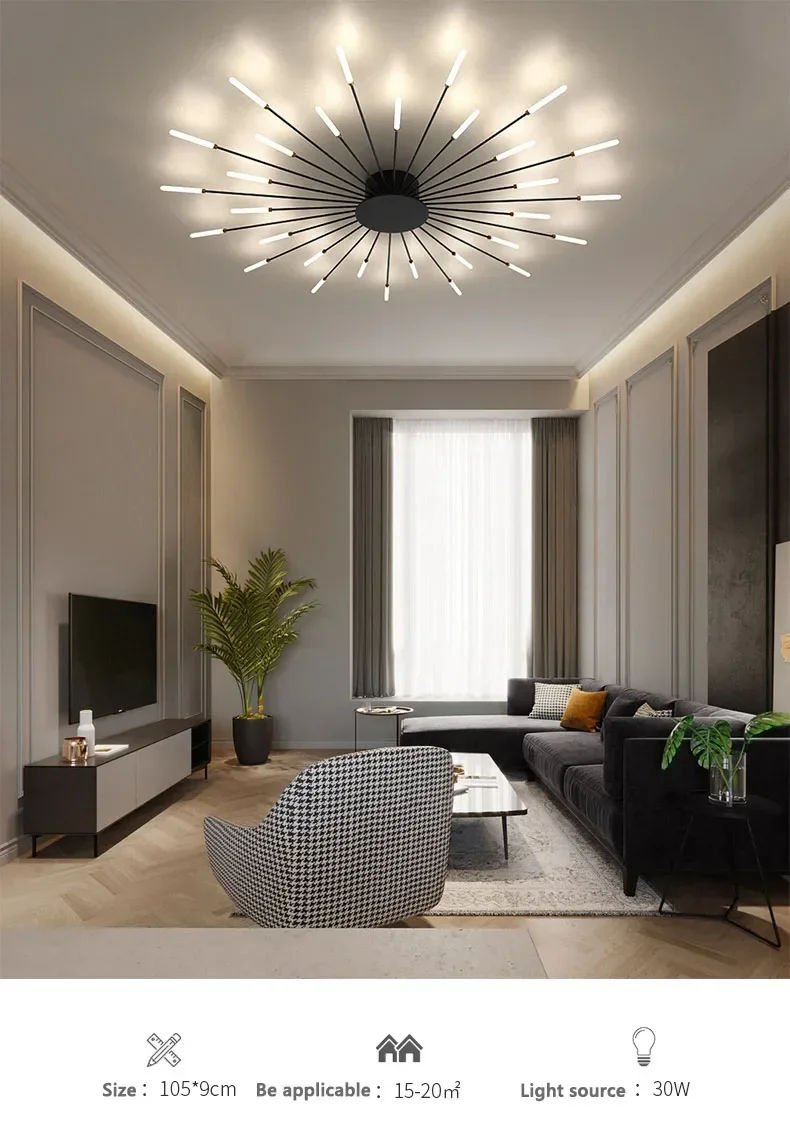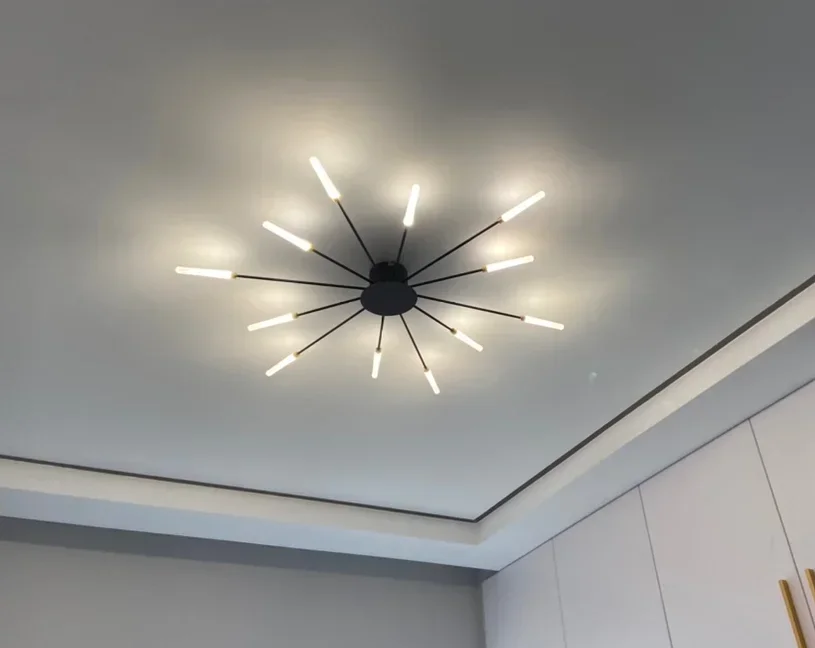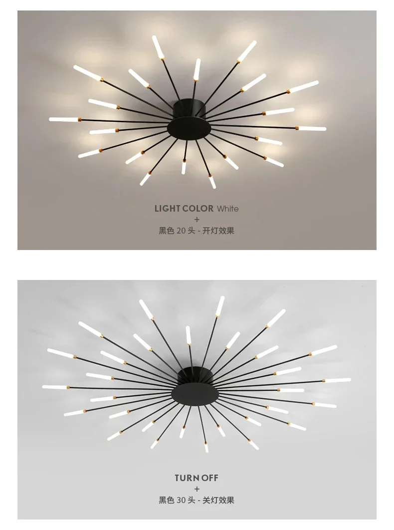 Modern Living Room LED Ceiling Lamps Nordic Bedroom LED Ceiling Lights Minimalism Gold Black Spiral Art Chandelier Light Fixture
