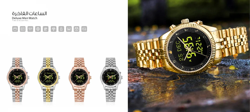 Muslim Arabic Watch with Azan Prayer Alarm Islamic Al Harameen Fajr Time Wristwatch Ramadan Gift
