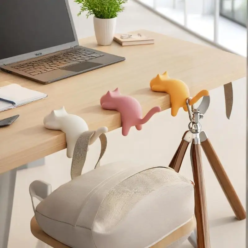 Cute Portable Cat Bag Hook Hanger Table Hook Handbag Backpack Travel Bag Organizer Holder Home Office Décor Desk Side Hooks